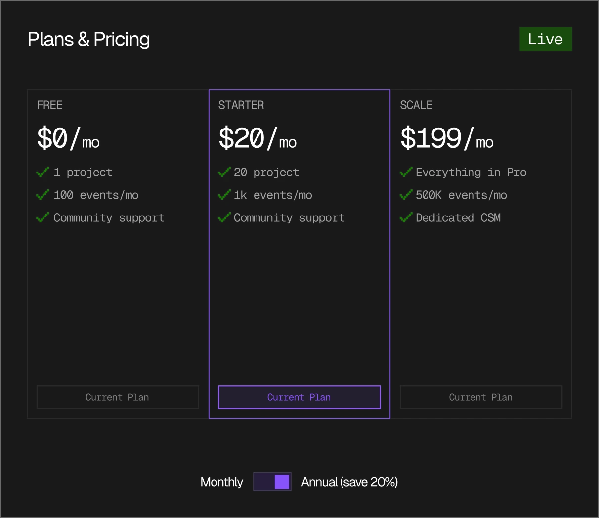 Autumn is a database purpose-built for billing state. Configure your pricing