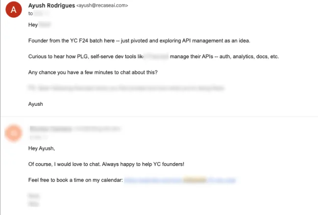 But after weeks of that same process, days of long and mind-numbing outreach, we couldn’t replicate it. We managed to sign some contracts towards the end of the batch (although I’m pretty convinced they did it as a favor to us with demo day coming up), lost conviction, and decided to pivot. That’s a story for another time with a bunch of learnings.